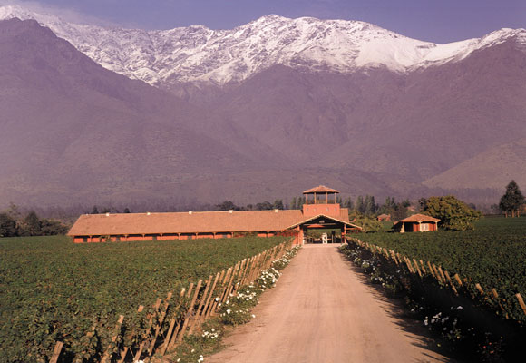 智利中南部是重要的葡萄酒產區。路兩邊漸入眼簾的是大片大片的葡萄莊園。安第斯山流下的晶瑩雪水,澆灌著中南部的谷地,加上豐富充沛的