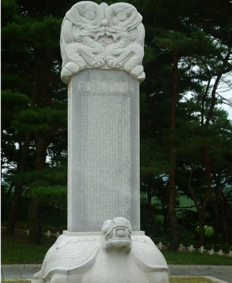 祭堂區右側有高麗明宗23年(公元1193年)刻上了高麗的著名詩人:李奎先生寫的“高句麗始祖東明圣王碑”和李朝世宗14年(公元1432年)立的“高句麗始祖東明王記績碑”。這些碑較詳細記述了與“東明王”的誕生、活動和逝世有關的內容及其年代。高句麗始祖東明圣王記績碑上記述了如下內容:“解慕漱之子朱蒙南下,在卒本建立高句麗國,制定官職。”當時他22歲,時為距建此碑1708年前。可見高句麗建國是公元前277年。
