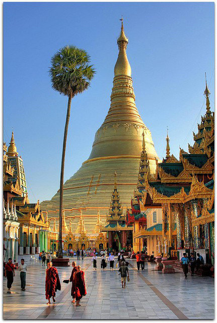 緬甸,忽顯神力自空中降下金磚,于是眾人拾起金磚砌塔佛,至今已有千余年的歷史。