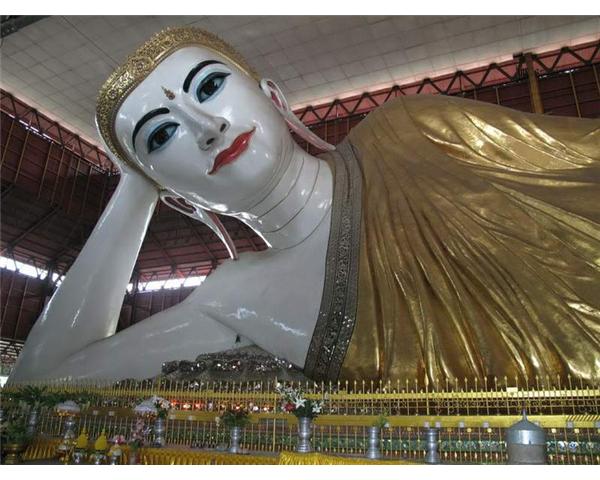 這座大臥佛原本是尊露天的的大坐佛,1953年建成。長20米,高5.4米,臥佛的眼睛以玻璃鑲成,并由一位中國畫家點出眼睛,神態慈祥豁達。