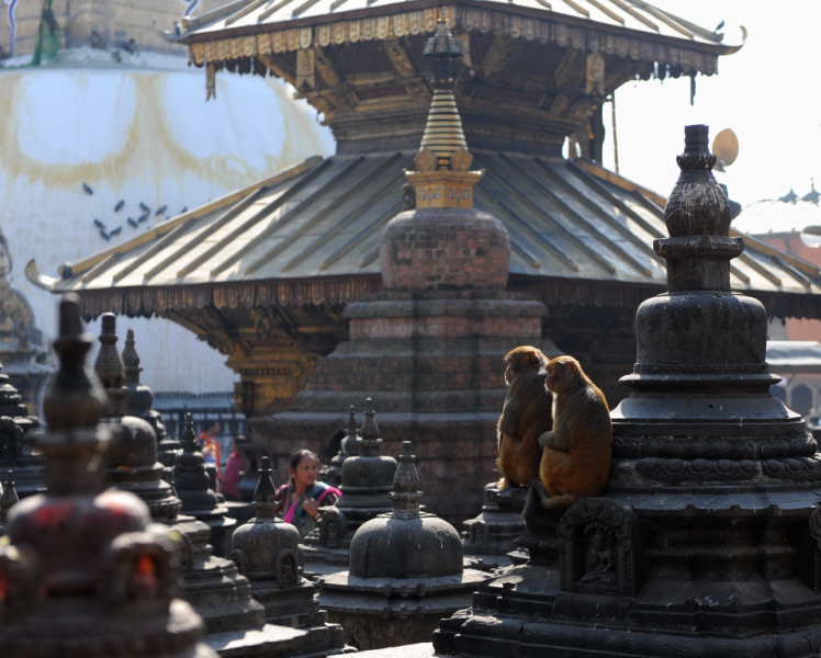 猴廟建在加德滿都以西的山頂上,登頂后可俯覽整個加都谷地,你會發現其密密麻麻的建筑甚至超過了