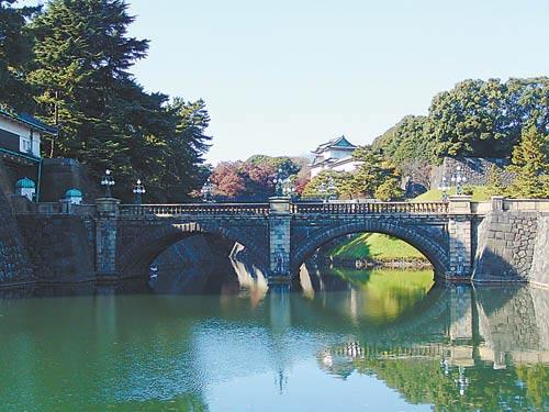 一條護(hù)城河環(huán)繞皇居,兩岸櫻花樹,林木掩映,這里本是德川家族居住的江戶城,明治維新后改建為皇居。河上一道二重橋,是皇居的象征,常有游人和它拍照合影留念。