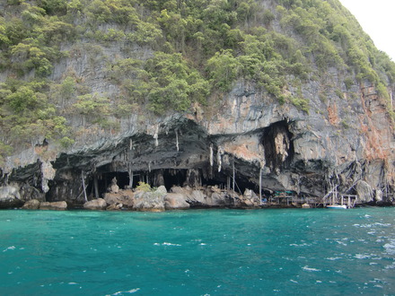 皮皮島上有幾個巨大的石灰?guī)r洞穴,泰國政府為了保護小皮皮島的生態(tài)環(huán)境,目前只開放維京洞穴供游人參觀。洞內(nèi)棲息著很多海燕,盛產(chǎn)燕窩,所以也被稱為“燕窩洞”。在附近的海面上,還可能看到工人采集燕窩的艱苦工作場面。
