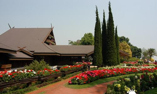 行宮外的花園里種植著泰北特有的植物樹種,一年四季,綠草如席,繁花似錦。