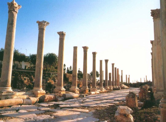 列柱大街由街道兩旁如隊列般整齊的科林斯式石柱得名,其實這些石柱是懸空水道的支柱,水從城北的山上引來,沿水道流入噴泉、浴室供居民使用,石板街下面有排水道,街面上每隔一定距離設有圓型排水孔。這可能是最早的城市供水系統了。這條長800米的大街從橢圓廣場筆直指向北門,街兩旁是步行長廊和商業店鋪,算是古代的商業街。大街上的地板仍是2000年前的原物,甚至還可以找到馬車碾壓的深深車轍。向北行走,路的左側有一處雕刻精美的美人魚水池,水從上面的弧型石孔流入長方水池,再流經七個獅子頭,最后流入排水道。它是杰拉什城內最重要的建筑之一,建于公元二世紀末期。