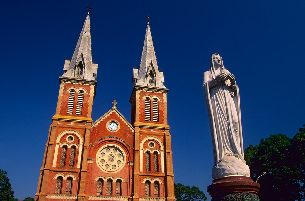 胡志明市圣母大教堂,因使用紅磚建造,又稱紅教堂,是