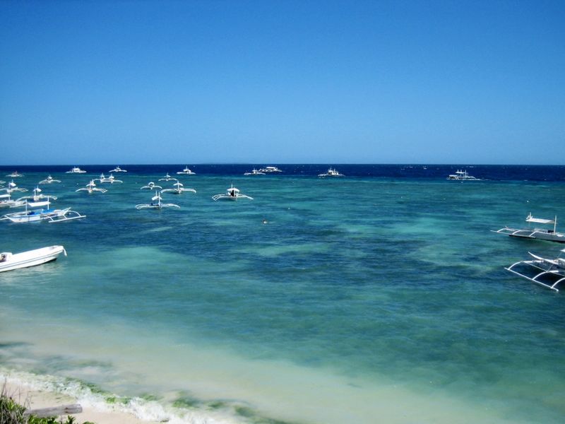 菲律賓第十大島,距離宿霧麥克坦島70公里,是個珊瑚島,碎珊瑚被海水沖成的沙灘,雖然不是像面粉那樣的細沙,但沙灘雪白雪白,把海水映得層次分明,近處是淺淺的綠,遠處是深深的藍。即使在暴曬的烈日下,踩上沙灘上仍是涼涼的。