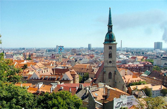 斯洛伐克首都布拉迪斯拉法市最顯著的建筑物之一,位于多瑙河岸邊一處85米高的高地上。城堡形如一張倒置的八仙桌,遠(yuǎn)遠(yuǎn)望去,城堡四角高聳的塔樓猶如桌子的四條腿,別具一格。